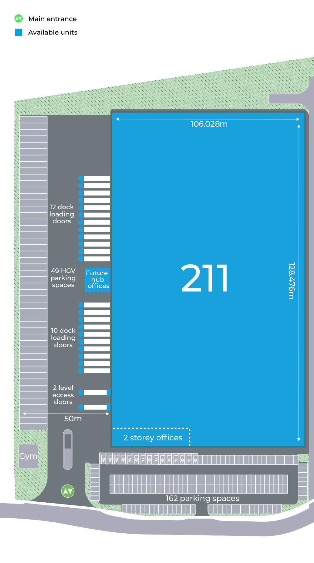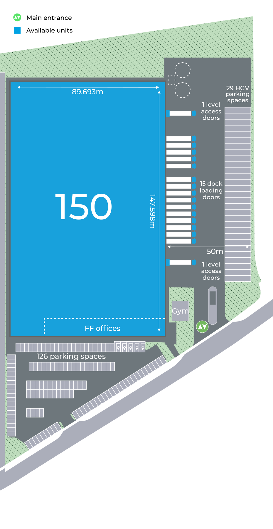 The units are 149,510 and 210,839 sq ft and will be grade A speculative built warehouses which will be available Q4 2026. The modern warehouse accommodations will offer two storey offices, generous parking with EV charging points and an on-site gym. The properties will benefit from 15m clear internal eaves height, a large service yard and dock and level access doors.1