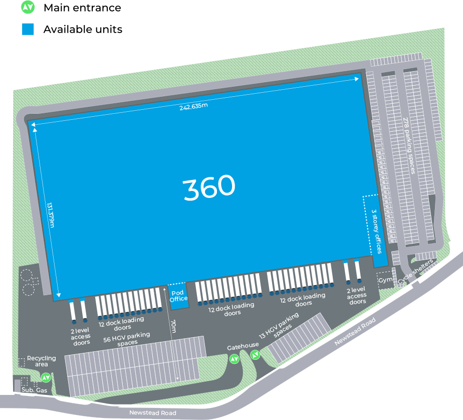 The 360,795 sq ft unit will be a grade A speculative built warehouse which will be available Q4 2026. The modern warehouse accommodation will offer three storey offices , generous parking with EV charging points and an on-site gym. The property will benefit from 18m clear internal eaves height, a large service yard and dock and level access doors.